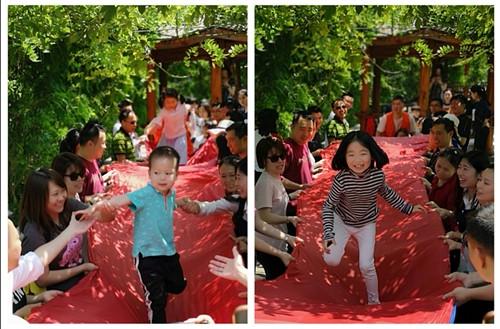 绿荫廊下,一轮轮轻松欢乐的亲子游戏开始啦!小朋友们齐动手,认真地布置着活动道具。“纸压板”上,家长与孩子们共同承受着痛感和压力考验。“亲子传送带”游戏更是将整个游戏活动带向了高潮。