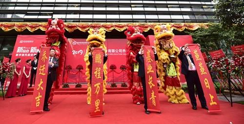 祥狮献瑞 寓意公司鹏程万里、基业长青